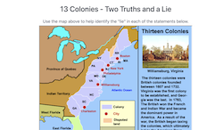 Our "Maptivation" Program allows students to create their own maps of the 13 colonies, complete with their own colors, labels, map features, key and much more. Just select "13 colonies" from the pull-down menu. Other maps are available also.