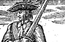 Calico Jack Rackham was an 18th-century English pirate known for his flamboyant clothing and the distinctive Jolly Roger flag he flew. He is also famous for having two female pirates, Anne Bonny and Mary Read, among his crew before being captured and executed in 1720. |