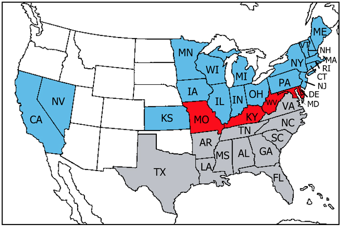 | Click on a state to learn about its role in the Civil War | |||||||